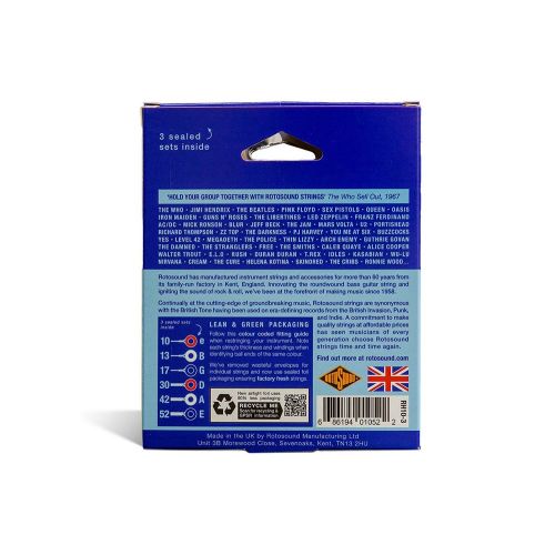 Multipack of Rotosound’s best-selling electric guitar strings. The combination of silky nickel wrap and powerful steel core makes our Rotos a great all-rounder for any playing style or genre