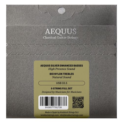 Aequus Silver Enhanced basses project each note with stability, maintaining precise harmonic balance across bass, midrange, and treble. Their character is especially evident in the mid register, where the guitar resonates with greater richness and control. BIO Nylon trebles have been technically refined to ensure faster and more precise adaptation to the instrument. Thanks to their optimized balance, they deliver a more natural and expressive tone in the upper register, completing the overall balance of the set. A high-performance string, meticulously designed to deliver precision and control across the entire range. For musicians seeking balance, control, and a present sound with enhanced detail and definition.